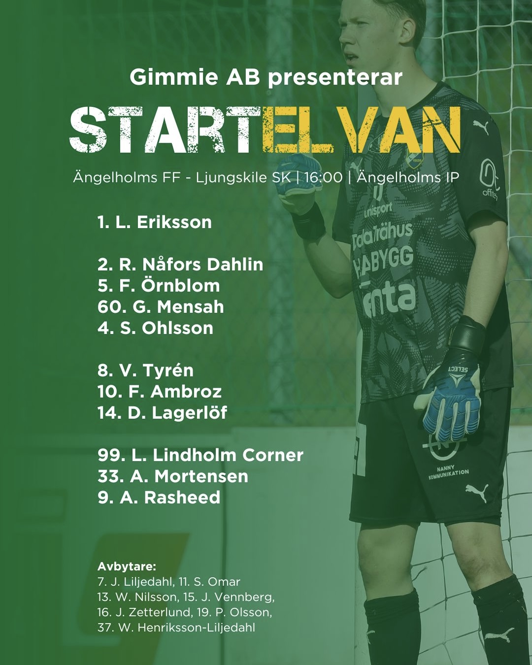 Det är snart dags för bortamatch mot Ängelholms FF med matchstart kl: 16:00 på Ängelholms IP. Dagens preliminära startelva kan vi presentera i samarbete med Gimmie AB.
