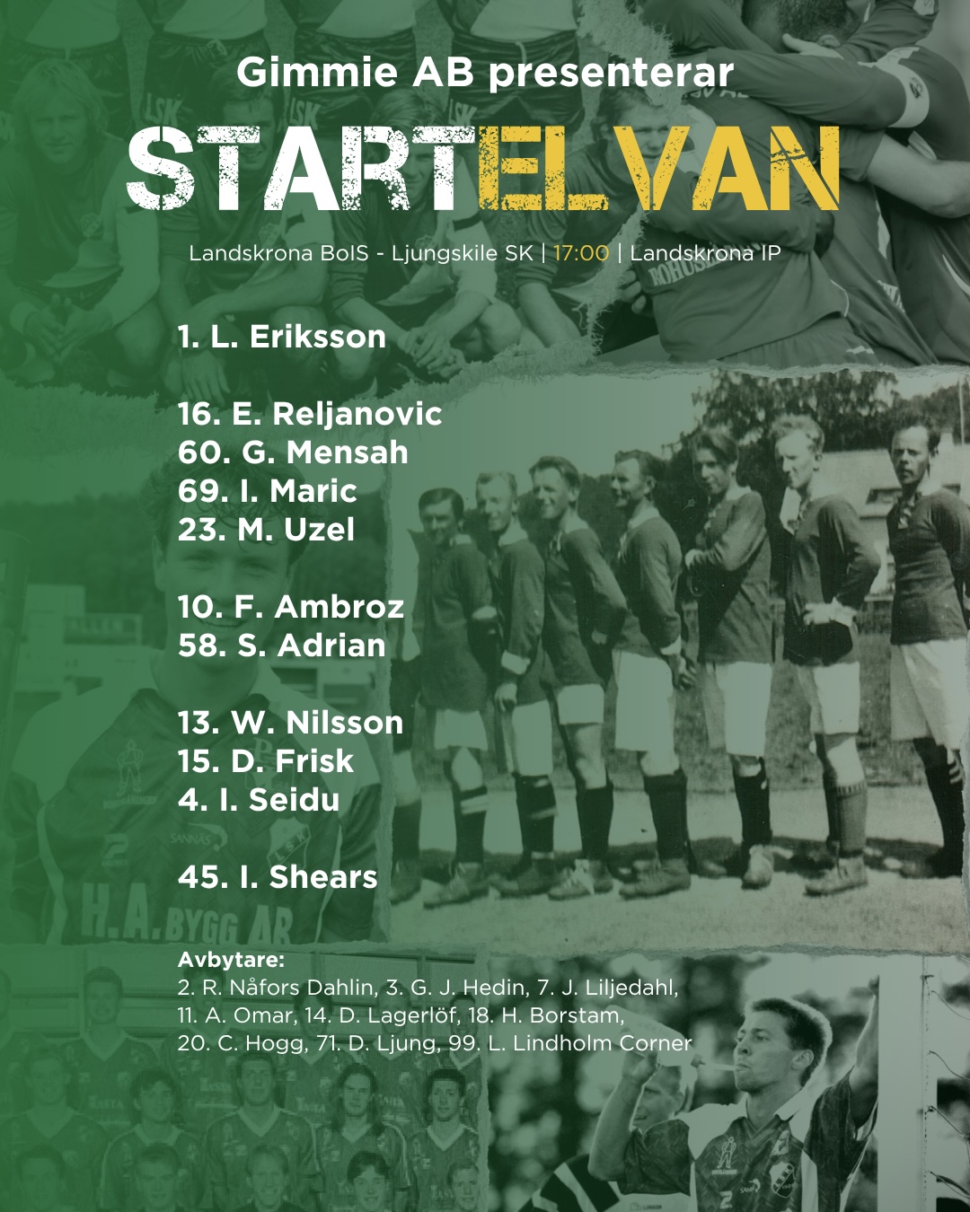 Det är snart dags för match i Superettan mot Landskrona BoIS. Matchstart kl: 17:00 på Landskrona IP. Dagens preliminära startelva kan vi presentera i samarbete med Gimmie AB.