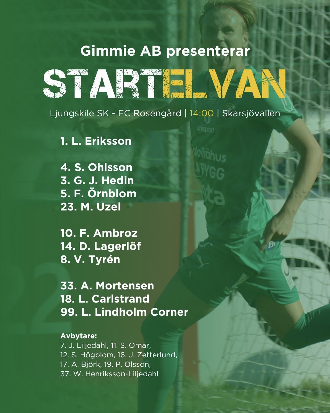 Det är snart dags för hemmamatch mot FC Rosengård med matchstart kl: 14:00 på Skarsjövallen. Dagens preliminära startelva kan vi presentera i samarbete med Gimmie AB.